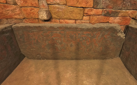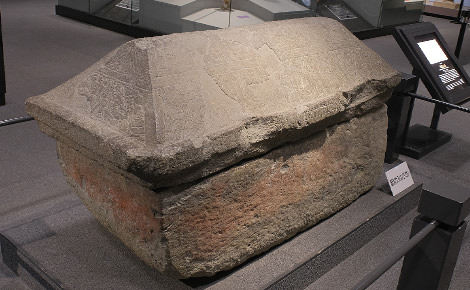 4世紀終わり頃から造られ始めます。石棺の蓋や身に円文や三角文、あるいは直弧文等の文様を浮彫や線刻で表現しています。