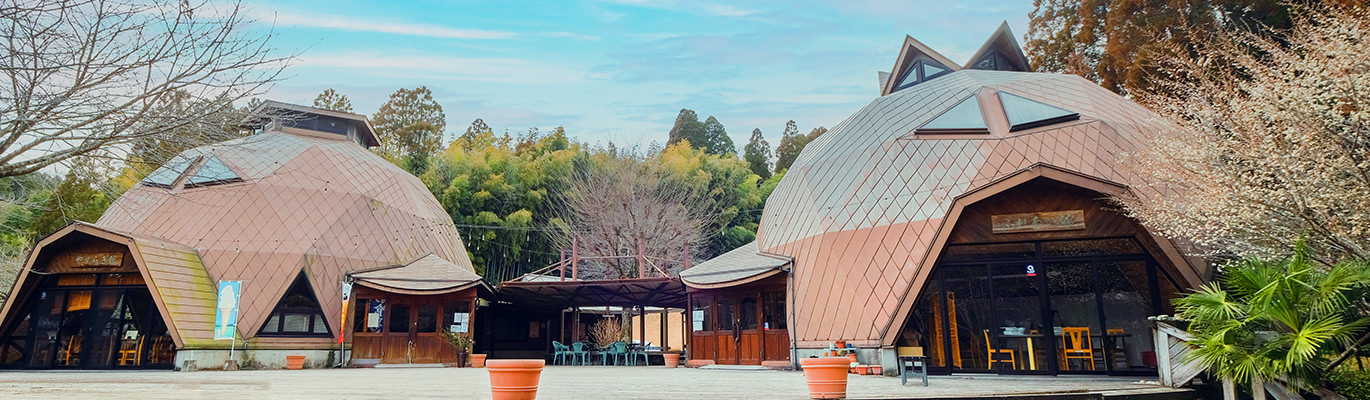 スイカとメロンをイメージした郷土料理レストラン「やすらぎ館」と物産品ギャラリー「ふれあい館」の2つのドームがあります。