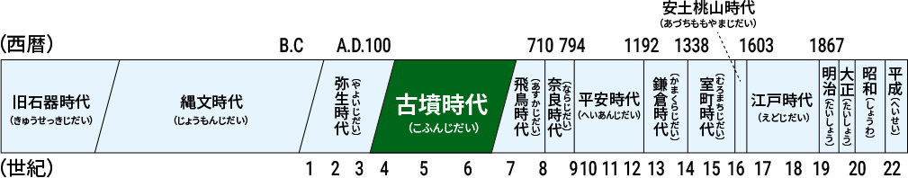 古墳とは主に3世紀〜7世紀にかけて土や石を高く盛って作ったお墓のことを古墳といいます。